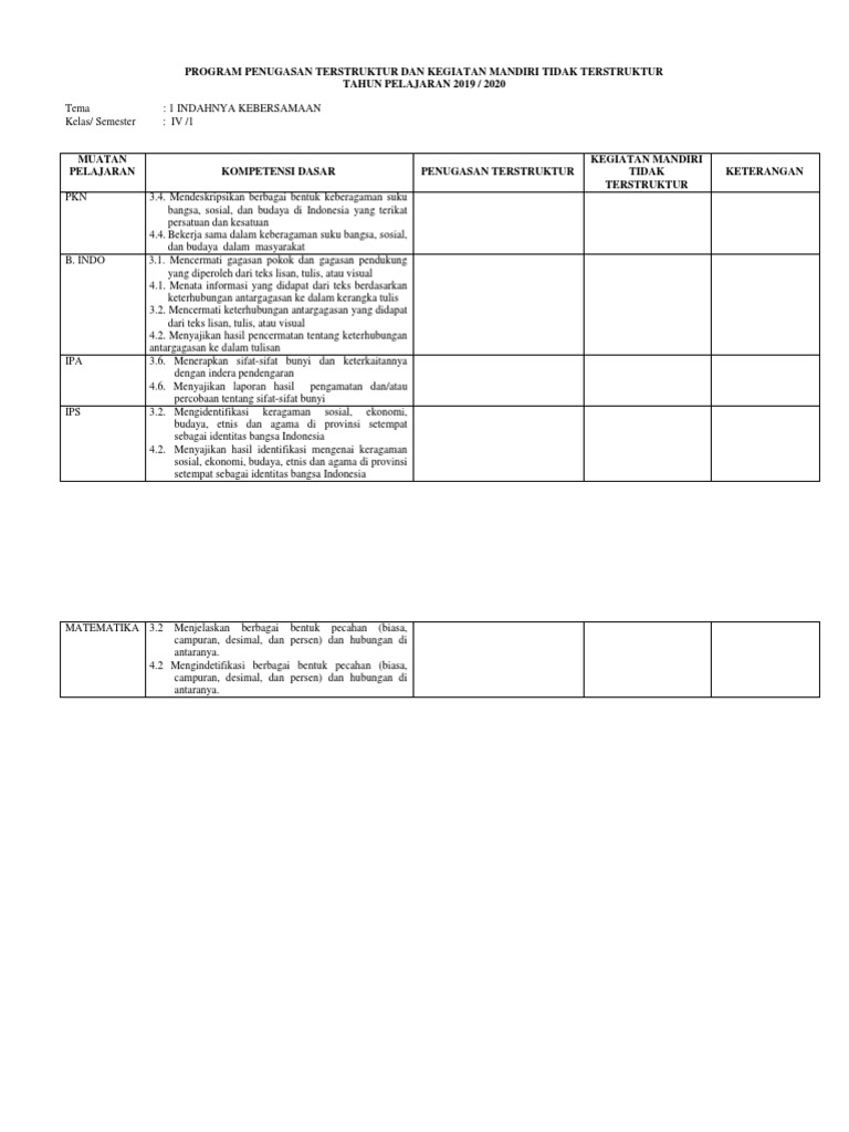 Bagi sekolah dasar / madarasah ibtidaiyah (sd/mi) yg bakal diakreditasi pasti bakal membuuhkan instrumen sebagai bukti fisik yg harus ada sebagai dokumntasi di sekolah. Unduh program terstruktur lalu kegiatan mandiri tidak terstruktur sd/mi kelas 1, 2, 3, 4, 5, 6 mapel pai lalu penjas. Tugas mandiri tertstruktur xmia1 & xmia2. Perangkat kbm matematika smp (11). Tugas kelas 2 sd baruna, gianyar.