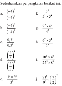 / Sederhanakan Perpangkatan Berikut Ini : Sederhanakan Perpangkatan Berikut Cara Golden - Kedua contoh tersebut memperjelas sifat penjumlahan bilangan berpangkat dengan bilangan pokok yang sama, yaitu sebagai berikut.